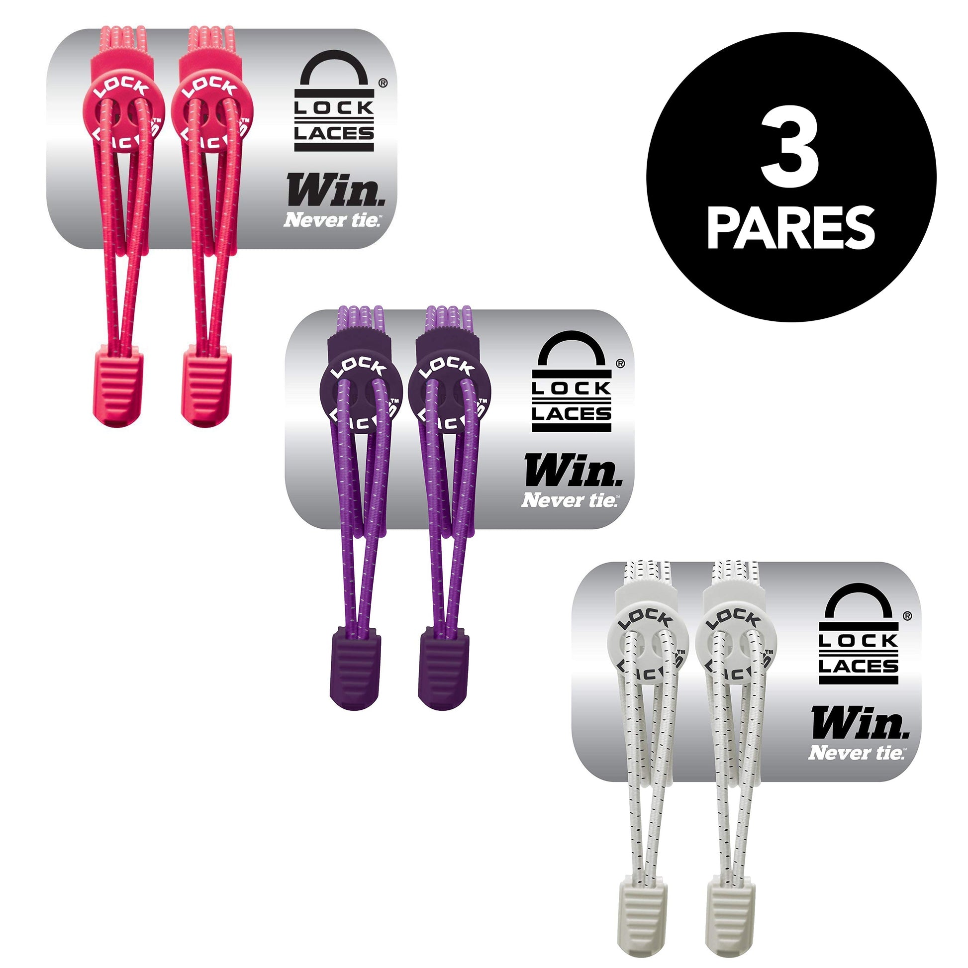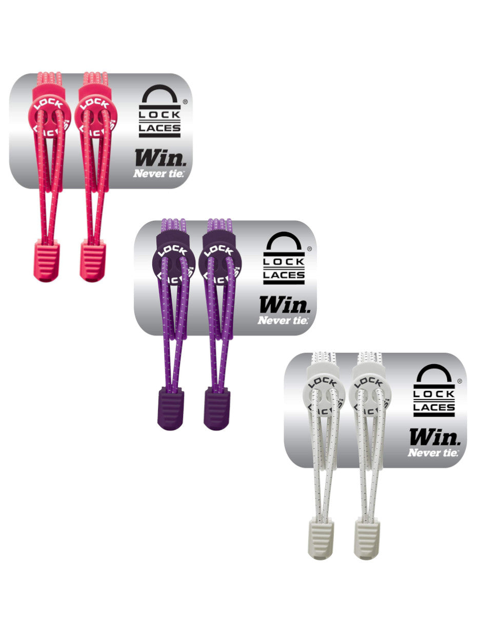 Lock Laces - 3 Pack - Rosa, Morado y Blanco